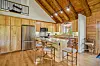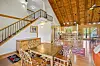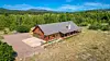 The home is a D-log cabin, meaning it was built with D-shaped logs that provide better insulation. The two-level dwelling spans 1,968 square feet and includes two bedrooms and two bathrooms. A two-car garage, loft area, in-floor heat and wood-burning fireplace are other features.