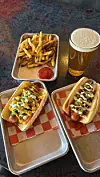 Some of the eatery’s signature dogs are the “Elote Dog” — a bacon-wrapped, deep-fried hot dog with flame-roasted corn, hot sauce, homemade red chile lime crema, cotija, chili powder and cilantro — and “Relleno,” which includes Panko-crusted dog bites topped with chile con queso and chopped green chile. The latter was featured on the Cooking Channel.