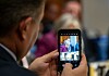 Mayor Tim Keller, left, prepares to light a candle on a giant menorah with the assistance Rabbi Chaim Schmukler, of Chabad of New Mexico, as hot air balloons form the shape of a menorah in the background during the Chanukah Night Glow at Balloon Fiesta Park on Dec. 17, 2017.