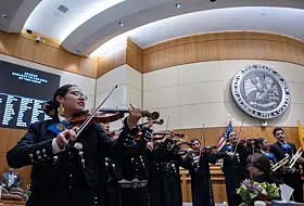 Jarelli Ruiz, left, 15, and members of a mariachi band from Artisco Heritage High School, perform on the House Floor during the first day of the 2026 legislative session, Tuesday, January 20, 2026.Eddie Moore/Journal