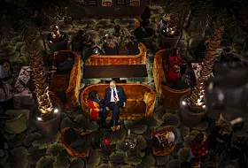 Shirley Morrison and Bill Elliott chat as Mayor Tim Keller’s supporters wait for Keller to make his speech during Keller’s election party at the Clyde Hotel in Downtown Albuquerque, N.M., on Tuesday, Dec. 9, 2025.