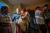 Johnson Nez blew a whistle to draw the attention of the Almighty and blessed a northwest Albuquerque home with corn pollen and prayers Wednesday morning in preparation for a Marine veteran and his family to move in.