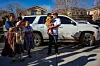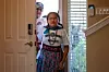 Dustin Francisco, with his daughters Kieralyn and Alexandria, watch as family friend Johnson Nez, at left, blesses their new home in Albuquerque on Wednesday.