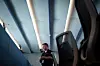 Dave Mackay, the Chief Pilot for Virgin Galactic, demonstrates how the company's training simulator operates with Jacqui Goddard, U.S. news correspondent for The Times of London, during a press tour of Spaceport America in southern New Mexico on Wednesday. Virgin Galactic will be sending three members of the Italian Air Force into space for a research mission Thursday morning. (Chancey Bush/ Albuquerque Journal)Chancey Bush