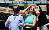 Balloons reflect in the sunglasses of pilot Michael Glen.
