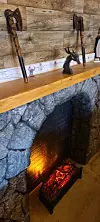 The atmosphere might have played a role in the change of heart. The interior, which remains a work in progress, has transitioned from an industrial-brewery feel to something that hearkens back to the longhouses of Nordic or Viking culture. Bernadette Daniels has painted the concrete walls to look like wooden planks, and she has designs on wrapping the metal beams in the ceiling with faux wood to provide an even more authentic visual.