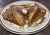 The Pandazis’ Greek heritage is apparent in some of the artwork on the walls and dishes on the menu. Dolmas top the Greek salad, and an omelet called the Athenian comes with spinach, olives and feta cheese. The sandwich section includes a Gyros Greek Classic ($11.49) and Chicken Souvlaki ($11.49) served in pita bread. The latter was nicely done, the chicken carrying smoke from the grill and a lemony sting over a cooling dressing. The finely shredded lettuce added lots of crunch. It was also served with fries.
