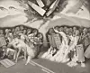 He said the image, which depicts political unrest, dates back to around 1987, when he lived in New York. He finished the piece in 2023 but said he sees the same things happening now. He said his work has always been about reflecting human nature.