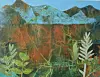 Bourne found inspiration in the colors and nature of New Mexico. His pieces showcase several places in New Mexico, including four of the Sandia Mountains from the same angle at different times of day and year.