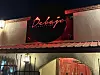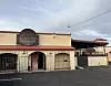 The restaurant is located on the north side of Lomas at 11th Street. The one-story stucco building with brick fringe is set behind a parking lot with about 15 spaces. Its entrance sits under an arched entryway and a circular metal sign that at night is lit from behind with a blood-red glow.