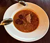 Fabada Espanola ($11), the lone soup on the menu, is a traditional Spanish dish made with white beans and chorizo. Served in a wide, shallow bowl, Debajo’s version was more stew than soup, with a few medallions of chorizo looking almost purple against the rust-red-colored broth. A piece of jamón serrano, a dry-cured ham with a nutty flavor, rose out of the middle like a sail. Hearty, smoky and peppery, the soup was filling and satisfying, if a touch underheated.