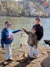 Ember, Charlie and Emma caught five nice-sized trout in the span of a few hours at Bonito Lake using Salmon Peach Glitter PowerBait and Rainbow Glitter PowerBait on Feb. 11.