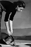 Martha Holmes’ 1949 photographs of Jackson Pollock depict the artist dribbling paint across an unstretched canvas on his studio floor while a cigarette dangles from his lips. These widely reproduced photographs of Pollock, along with Hans Namuth’s from 1950, helped inspire the art critic Harold Rosenberg to rechristen the abstract expressionist movement “action painting” in his influential 1952 essay, “The American Action Painters,” reframing the painters’ processes, not as compositional strategies, but as dance-like physical improvisations.