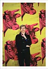 The following year, Schapiro photographed Warhol in front of his “Cow Wallpaper” at the Leo Castelli Gallery. Giant pink cow heads covered the walls of the gallery’s main room, while the artist’s helium-filled “Silver Clouds” floated aimlessly in an adjoining room. The exhibition, which Warhol announced in interviews as his “farewell to painting,” paved the way for the Instagrammable, Meow Wolf-style immersive art experiences of today. In the photo, Warhol crosses his arms and holds his left hand to his face in an oddly stylized gesture, his middle finger pressing his lip into a slight smirk. This is the image of a deadpan artist-provocateur, whose ironic self-presentation was inseparable from his art.