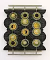 There are cutaway sculptures of planets and suns. There are grids that get broken and reassembled. There are forms that look like UFOs but which might also be atoms or single-celled organisms. Together, Maki’s shapes, forms and systems exemplify a rational, scientific view of the universe. But she messes with those rational systems by introducing other systems to deconstruct them from within.