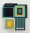For Maki’s “Shape Shift: New Geometric Paintings and Constructions,” the undoing is already there in the title. “Shape” refers to the shapes Maki paints, as well as the shapes of her paintings — none of which are simple rectangles. “Shift” refers to the fact that these geometric systems get “shifted,” one way or another, in each of her pieces. In “Gnosienne,” a series of rectangular frames — both trompe l’oeil and actual — coil into a counterclockwise spiral; the implied circular motion of the spiral completely disrupting the rectangular structure implied by the frames.