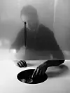 In “Queer Phenomenology” (2006), Sara Ahmed extends Fanon’s insights beyond race to encompass what she calls the “disorientation” of being queer in heteronormative spaces, and Perea’s work thinks through the embodied experience of queerness as much as Blackness. “My work is shaped by my experience navigating between my Afro-Latinx and nonbinary identity,” Perea writes in their artist statement, noting that notions of identity and belonging, including “Black queerness,” are “often distorted by the ongoing colonial histories of the camera.” I don’t think Perea’s work is pessimistic, though. In this highly constructed, self-aware image, I see an artist-auteur asserting their own agency while critiquing those distorting lenses that would flatten their identity into a caricature. And while the figure extending their hand beyond the frosted partition is not literally a DJ, their DJ-like pose suggests that predetermined cultural codes are things to be sampled and remixed, not blindly accepted.