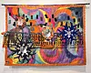 In Morgan’s quilt, the faces of Gray and West are encircled by kaleidoscopic snowflake shapes, which, upon closer inspection, turn out to be paper-doll-style silhouettes of policemen. Should we read the work ironically, where the bright colors and exuberant shapes represent only a false and fleeting joy, while the real truth, barely camouflaged, is one of brutal repression? Or are the joy and beauty just as real as the violence? I think the joy here is real. If Morgan had wished to use bright colors ironically, she might have used only pastel colors, or actual rainbows. Her colors may be vibrant and numerous, but they’re not indiscriminate, nor are they easily digested. She intentionally disrupts harmonic relationships with moments of tension and dissonance, transmuting pain into joy as beautifully as the music at a New Orleans jazz funeral, which begins in mourning and ends in celebration.