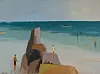 “Doctor’s office art,” I thought to myself, upon entering Herman Maril’s show at LewAllen Galleries. The colors were muted, the subject matter generic and the human figures featureless and stiffly posed. There were faint echoes of Paul Cézanne and Henri Matisse in Maril’s reductive approach to form, but none of those artists’ passion for life, it seemed. Cézanne may have reduced his bathers to architectonic forms, but those forms still pulsed with energy and motion, whereas Maril’s beachgoers in “Kendall Lane Beach/Cape Beach” stood like wooden posts on a jetty, as if someone with a megaphone had just commanded the entire shoreline to stand for the Pledge of Allegiance. In “Sunset at Cape Cod,” his stick-figure people seemed to turn into crosses.