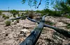 Flow pipes across a site where a salt water disposal well was used in Lea County, Wednesday, May 8, 2024.Eddie Moore