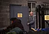 David Stone, who has lived on the street for three years, looked on as a handful of volunteers scraped sinewy burnt plastic from the asphalt.