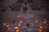 Farolitos light San José de los Jémez Mission and Gisewa Pueblo site