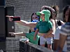 After the news conference, over a dozen people were walking down the new habitat when they saw a mountain lion playing with a ball. Some took photos with their phones while kids pointed them out to their parents and smiled.