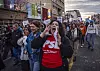 More than 70 protesters marched from Robinson Park, their chants ringing down Central Avenue as they made their way to Civic Plaza for the “No War on Venezuela” rally in Downtown Albuquerque on Saturday, Jan. 3, 2026.