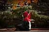 Serene Akkad, a nursing student at UNM, sits holding the Palestine flag during a silent protest calling for immediate ceasefire in Palestine outside on the University of New Mexico Health Sciences campus in Albuquerque, N.M., on Friday, Nov. 10, 2023.Chancey Bush