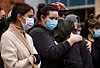 Healthcare professional Marwa Kassem cries as she is comforted by educator Sandra Akkad during a silent protest calling for immediate ceasefire in Palestine outside at the University of New Mexico Health Sciences campus in Albuquerque, N.M., on Friday, Nov. 10, 2023.Chancey Bush