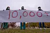 Health care student Butheina Ghweir helps hold a 40-foot-long piece of paper listing the thousands of names of Palestinians who have been killed in the Israel-Hamas war, during a silent protest calling for immediate ceasefire in the Mideast at the University of New Mexico Health Sciences campus in Albuquerque.Chancey Bush
