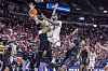 On the other half of the bracket, top-seeded Utah State beat No. 8 UNLV, 80-60. Mountain West Player of the Year Mason Falslev scored 24 points to go along with nine rebounds, three assists and three steals.