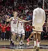 “I want to give credit to New Mexico. Obviously, Eric's a really good coach. I've coached against him before. He's doing a great job,” said Caputo, who said this was his first time in Utah or New Mexico. “But those three freshmen — I mean, it's funny to me, with all the great freshmen there are in college basketball this year, and there are so many of them, I don't think anybody's really talking about these three guys, how good they are. I don't know that I can remember, and I've coached high-major basketball and mid-major basketball, I can't remember three freshmen as good as Hall, Tenette and Buljan.”